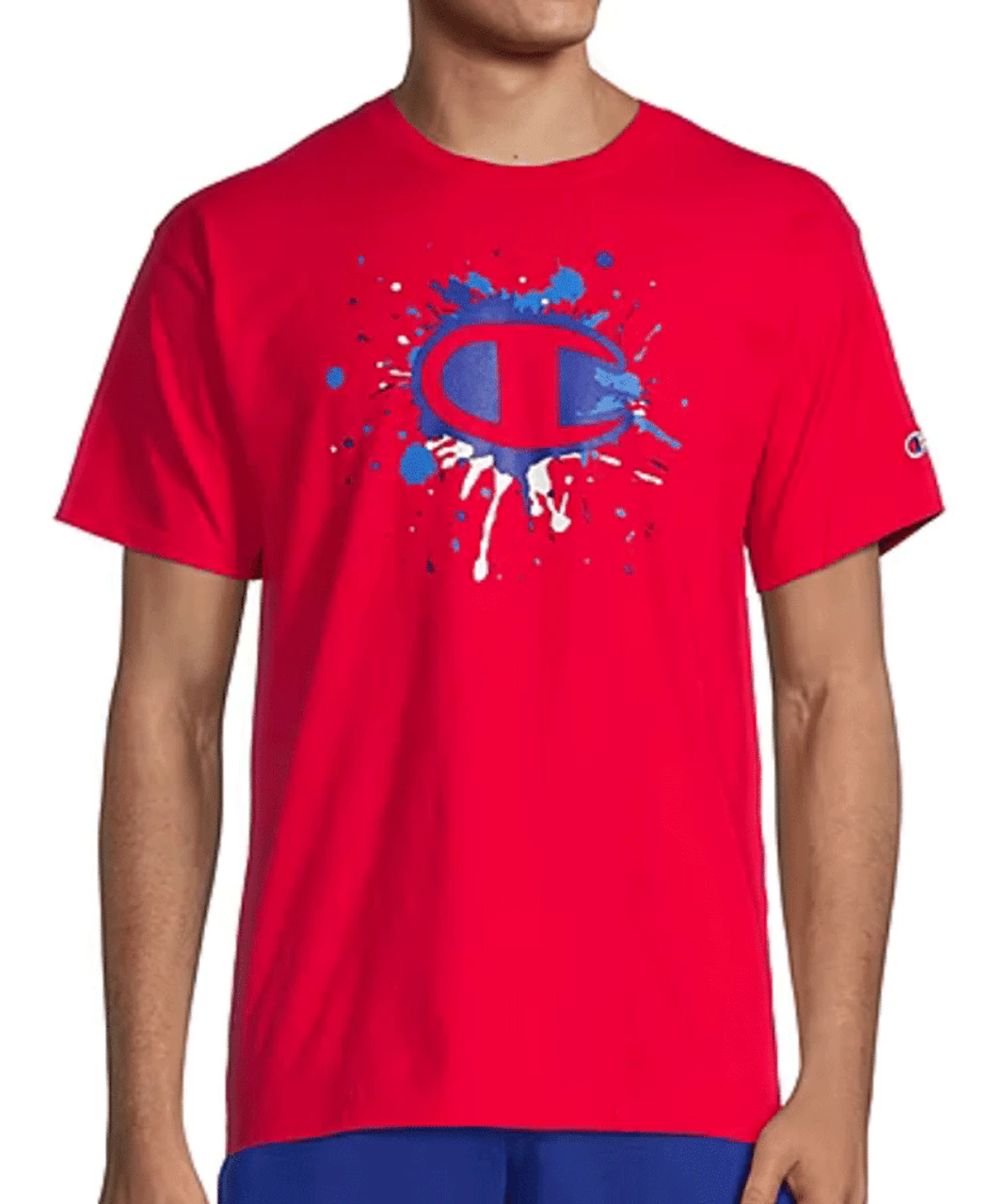 This Americana tee by Champion is the perfect addition to your casual wardrobe. It features a cool red, white and blue “paint splatter” pattern on the front of a quality, 100% soft cotton tee. Champion “C” logo patch embroidered on left sleeve. Fabric content: 100% cotton.