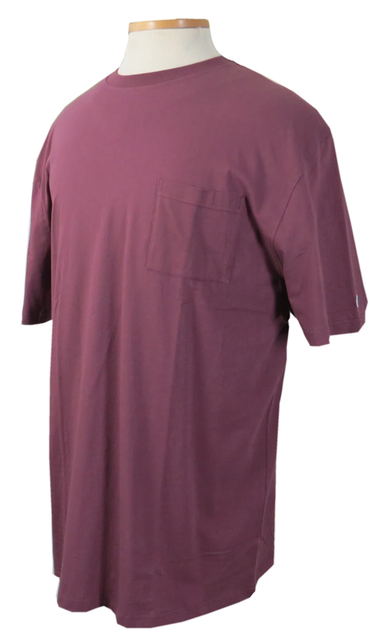 This classic pocket tee shirt by Champion is perfect for every day wear. Made of thick, soft 100% cotton. Ribbed knit crew neck with reinforced neck seam for durability. Left chest pocket and embroidered “C” logo patch at left sleeve.