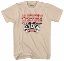 This sand colored Disney Mickey Mouse Tee Shirt is a fun addition to your tee shirt collection. The short sleeve crewneck tee features a vintage Mickey Mouse in thee style of a classic cartoon film reel below the name, “Mickey Mouse.” Officially Licensed Disney Apparel. Fabric Content: 100% Cotton.