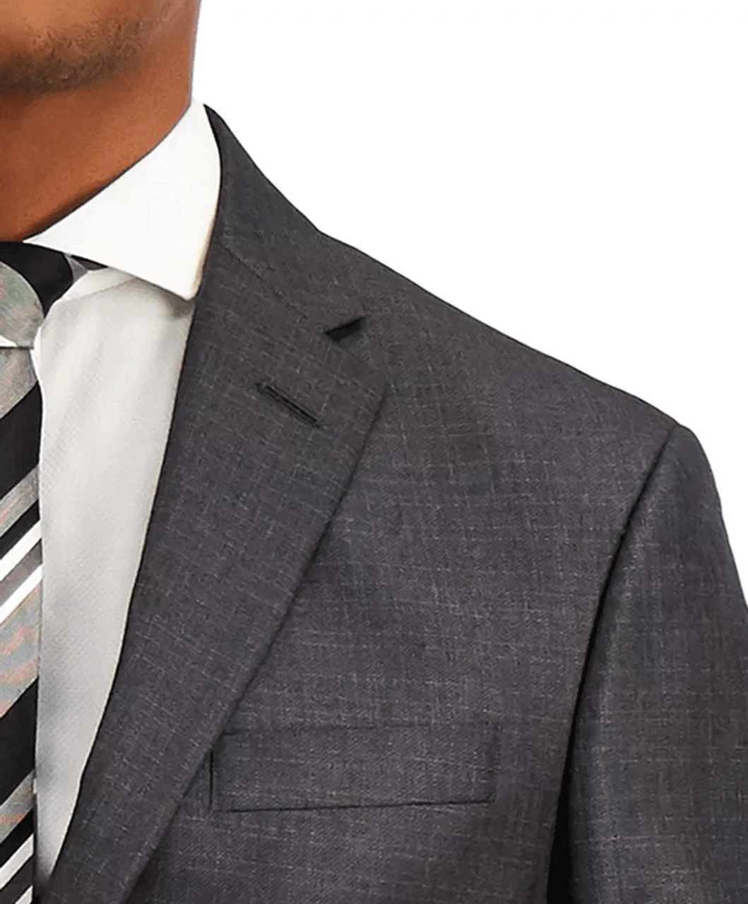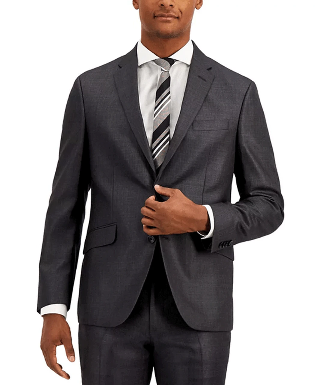 A beautiful suit at an Amazing Price! This 2-Piece Gunmetal Gray Suit by Kenneth Cole is crafted with Techni-Cole performance fabric for comfort, stretch and wrinkle resistance, providing the ultimate in comfortable, professional wear. The fully-lined jacket features notched lapel, side vents, one left chest welt pocket, two lower front angled flap pocket and three interior pockets. Two-button closure with decorative buttons at cuffs.