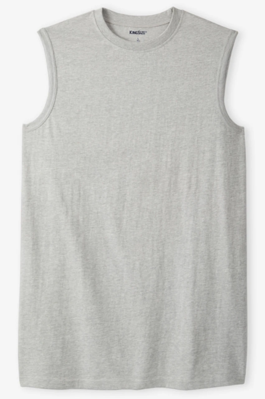 This Heather Gray sleeveless tee by King Size is generously sized for any activity, work or play. Made of a heavyweight, shrink resistant cotton, polyester blend to hold its shape wash after wash. Taped seams for durability, tagless design for extra comfort, Fabric content: 90% Cotton, 10% Polyester.